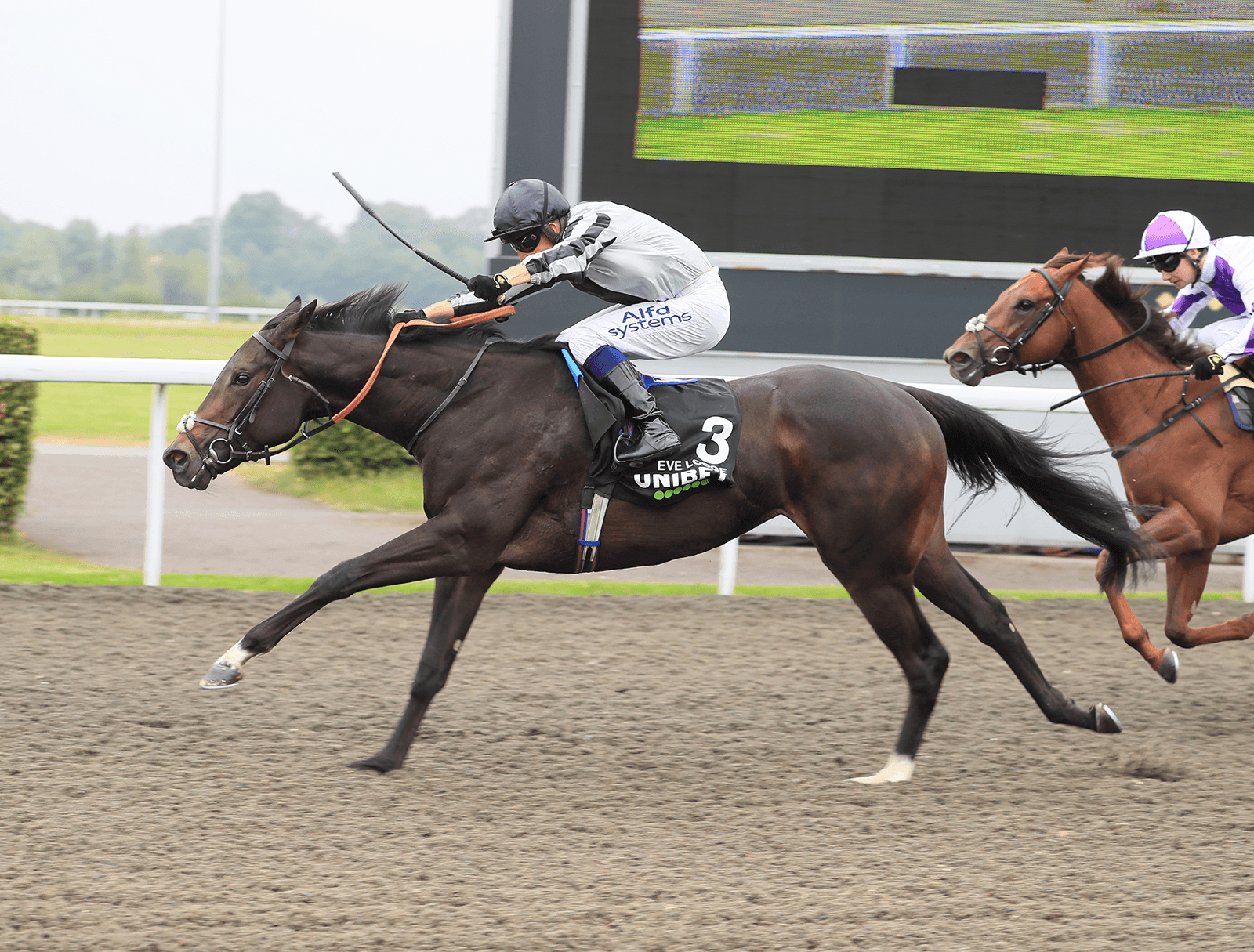 Eve Lodge (right), purchased for just 12,500gns, won the Group 3 Sirenia Stakes.